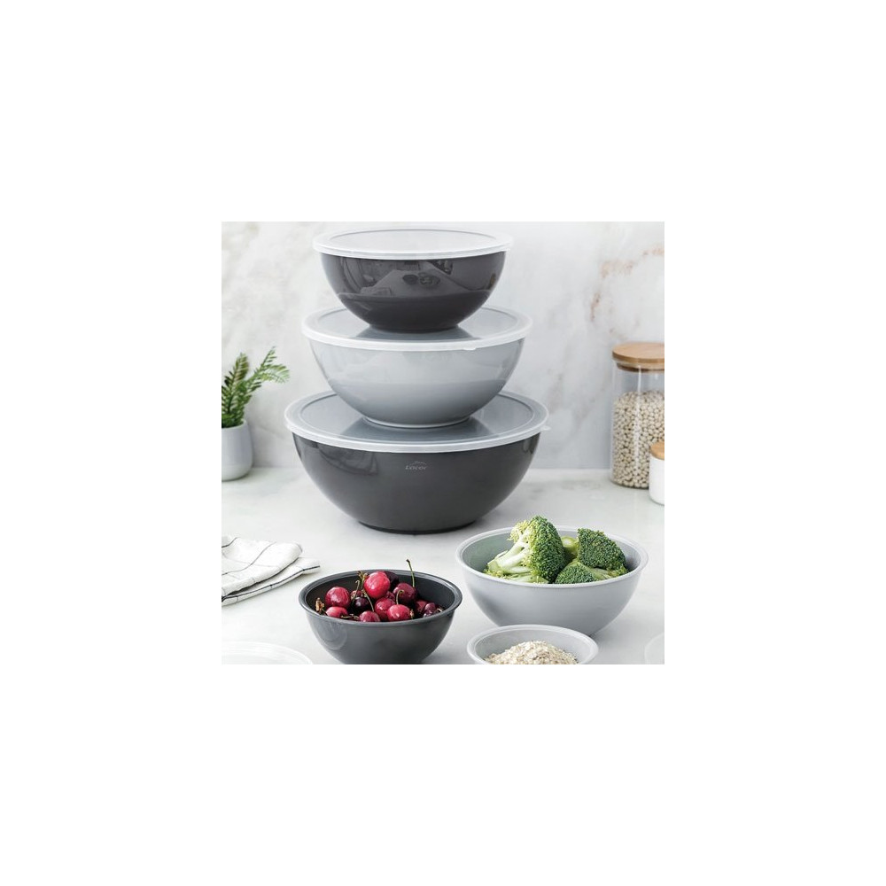 Ce coffret comprend 6 saladiers de diamètres différents, chacun livré avec son couvercle hermétique. Leur conception parfaitement empilable permet un rangement optimisé, idéal dans les petites cuisines comme dans les grands espaces de préparation. Les couvercles assurent une conservation efficace des aliments, limitant les pertes et préservant les saveurs.