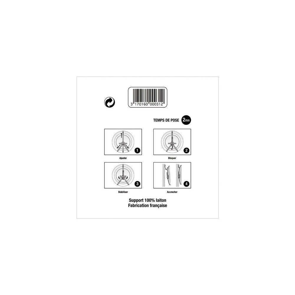Conseil d'utilisation : Pour les assiettes dont le diamètre dépasse 35 cm ou dont le poids est important, choisissez un point de fixation mural solide (cheville à expansion ou vis en bois selon le support). Ajustez les trois bras progressivement et de manière symétrique pour répartir la charge uniformément.