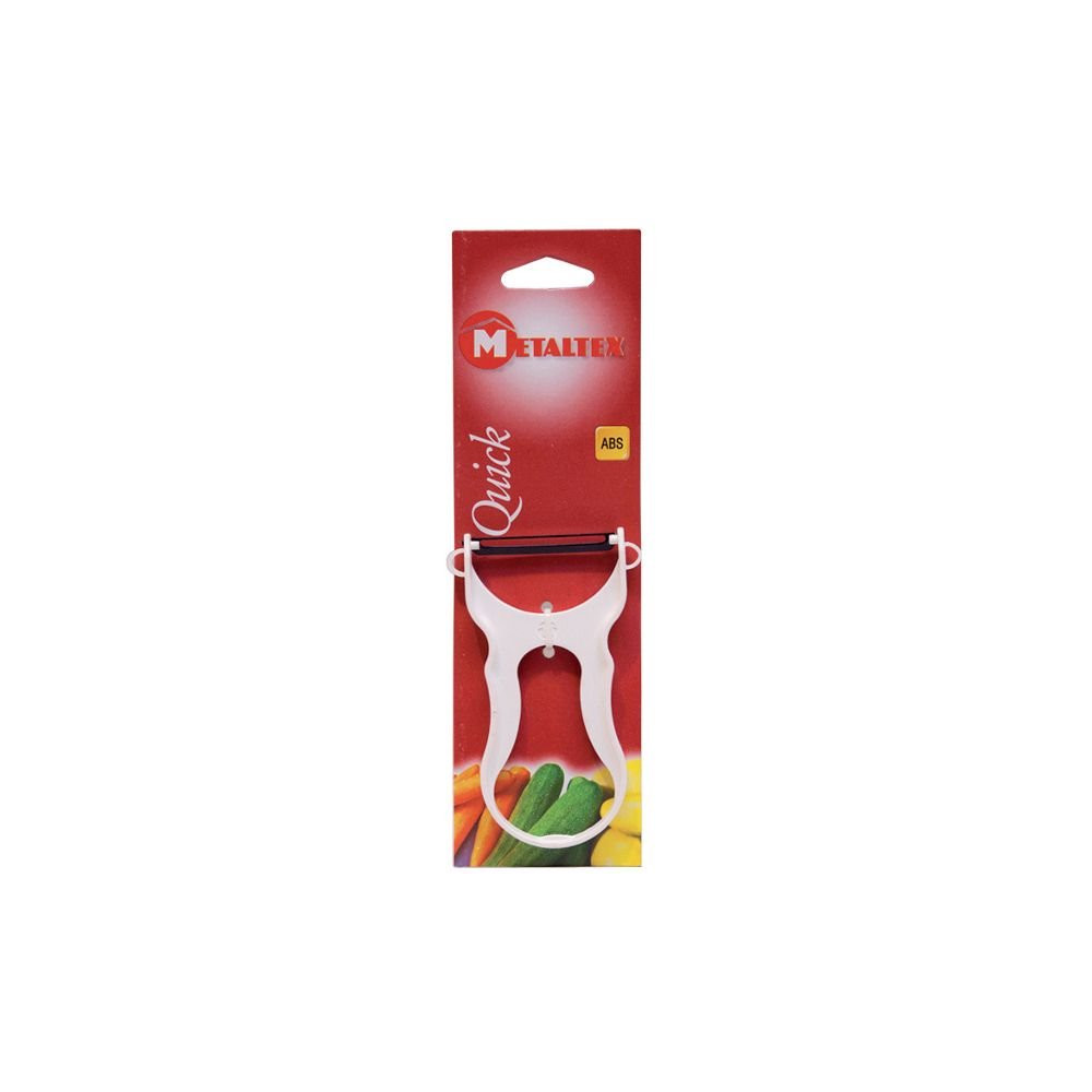 Éplucheur rase légumes - Lame en acier trempé - Manche en plastique blanc - Convient aussi bien aux droitiers qu'aux gauchers.