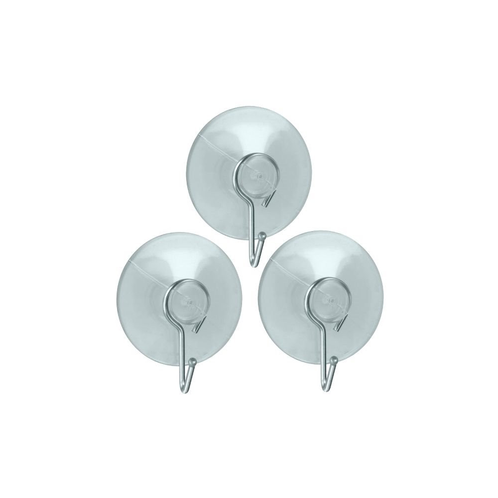Lot de 3 crochets à ventouse - Pour accrocher vos torchons, serviettes ou maniques - Ventouse transparente et crochet en inox - Diamètre : 5 cm.
