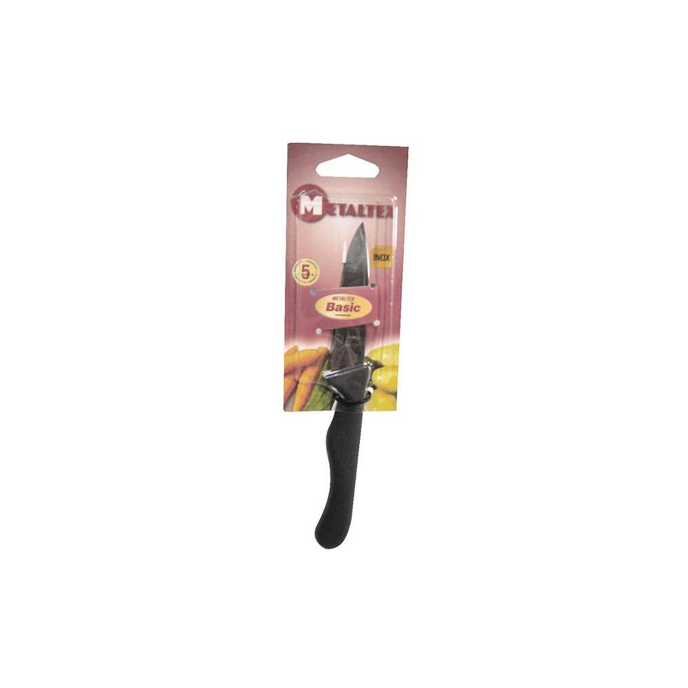 Compact et précis, le couteau office METALTEX à lame de 8 cm est l'outil indispensable pour toutes les tâches d'épluchage, de découpe fine et de préparation de précision en cuisine. Sa lame courte de 8 cm en fait un couteau maniable et parfaitement adapté aux travaux minutieux comme peler des fruits, tailler des légumes ou dénerver des viandes.
