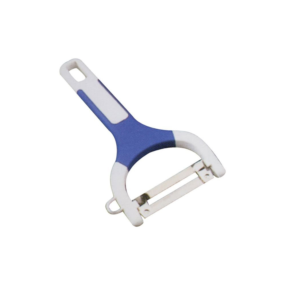 Rase légumes bi matière - Il possède une lame en acier inoxydable - Coloris blanc et bleu - Il est utilisable aussi bien par les droitiers que par les gauchers.