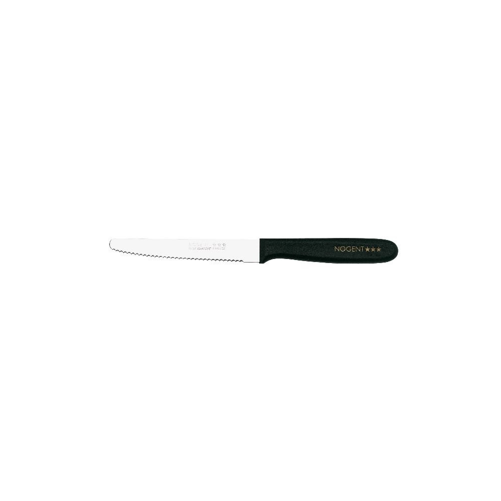 Le coloris noir du manche apporte une touche sobre et intemporelle, parfaitement adaptée aux arts de la table contemporains. Avec sa lame de 11 cm bien équilibrée et son tranchant cranté efficace, ce couteau assure des découpes précises sur viandes, légumes ou pains, sans effort particulier. Il s'inscrit dans une démarche de qualité accessible, chère à la tradition coutellerie de Nogent.