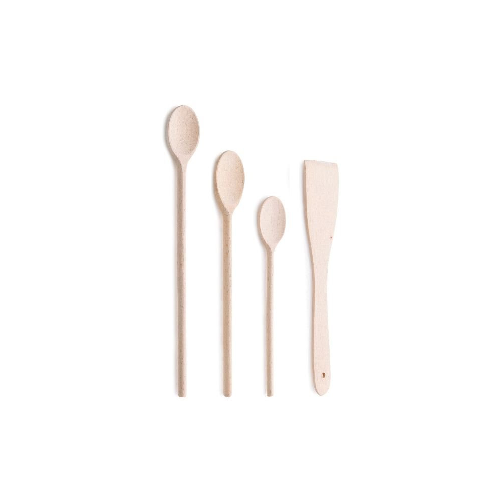 Ce set se compose de 3 cuillères ovales aux dimensions progressives : 25 cm, 30 cm et 35 cm, permettant de choisir le bon outil selon la taille de la casserole ou du saladier, ainsi que d'une spatule de 30,5 cm pour retourner, racler et étaler avec précision. Tous les ustensiles sont fabriqués en bois de hêtre, un matériau noble, naturellement résistant à l'humidité et aux chocs thermiques, qui ne raye pas les revêtements antiadhésifs.