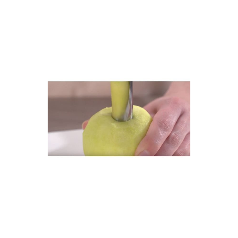 Préparez vos pommes et autres fruits à pépins en un éclair avec le vide-pomme TESCOMA GrandChef. Conçu pour retirer le cœur et les pépins d'une pomme en un seul geste net et précis, cet ustensile est indispensable pour réaliser des tartes, des pommes au four, des compotes ou des fruits farcis sans perdre de temps ni de chair.