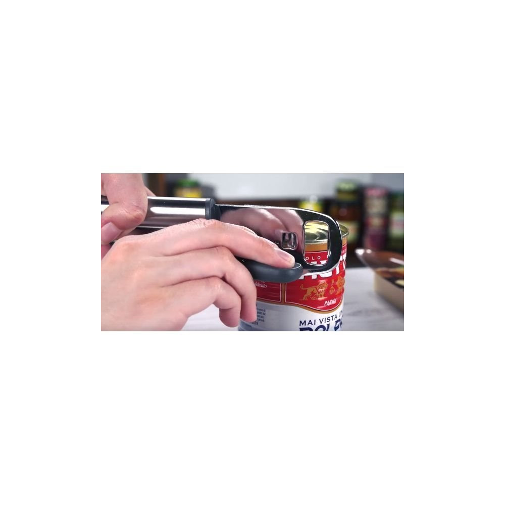 Sa conception soignée garantit une prise en main confortable et une découpe nette des couvercles de boîtes de conserve, sans effort excessif. Comme tous les ustensiles de la gamme GrandChef, il est équipé d'un anneau de suspension qui permet de le ranger facilement sur une barre porte-ustensiles, libérant ainsi de l'espace dans vos tiroirs.