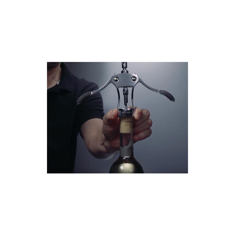 Son mécanisme à double levier facilite considérablement l'opération : le tire-bouchon s'insère précisément dans le bouchon, puis les leviers remontés permettent de l'extraire en douceur, sans risque de détériorer ni le bouchon ni le goulot. Une conception pensée pour un résultat net à chaque utilisation.