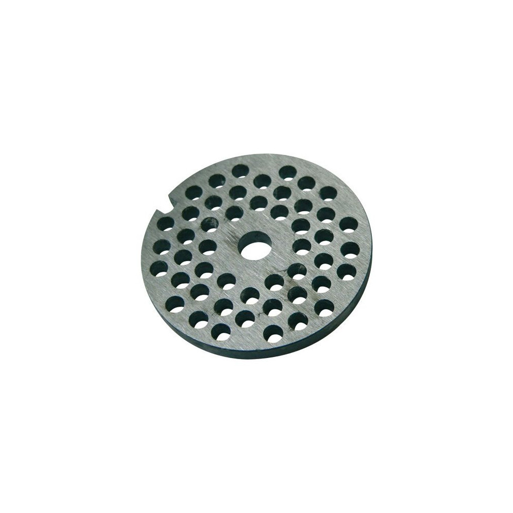 Pour les préparations hachées à gros morceaux, la grille REBER pour hachoir manuel N°5 à trous de 10 mm s'impose comme l'accessoire de choix. Dotée de larges perforations, elle permet un passage rapide de la viande tout en conservant une belle texture en bouche, idéale pour les recettes les plus rustiques et généreuses de la cuisine charcutière.
