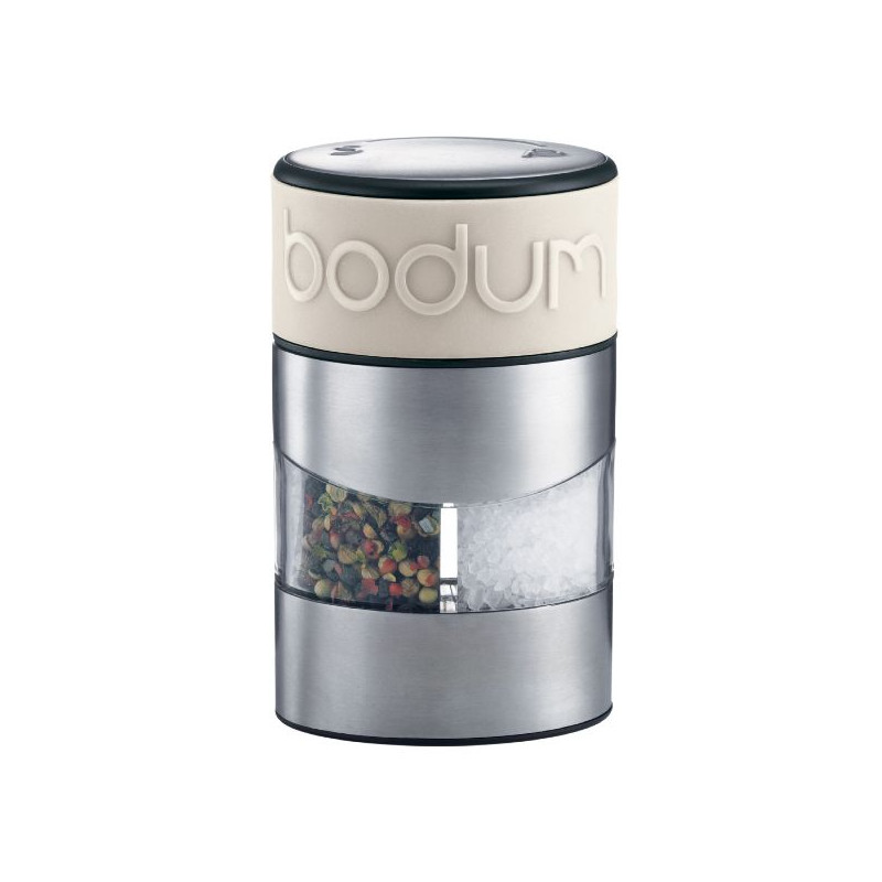 Retrouvez ce moulin BODUM Twin blanc crème chez Brikoleur, disponible également en d'autres coloris. Un cadeau gourmand qui fait aussi le bonheur des amoureux du design. Rechargeable facilement, il vous accompagnera des années durant avec la même efficacité.