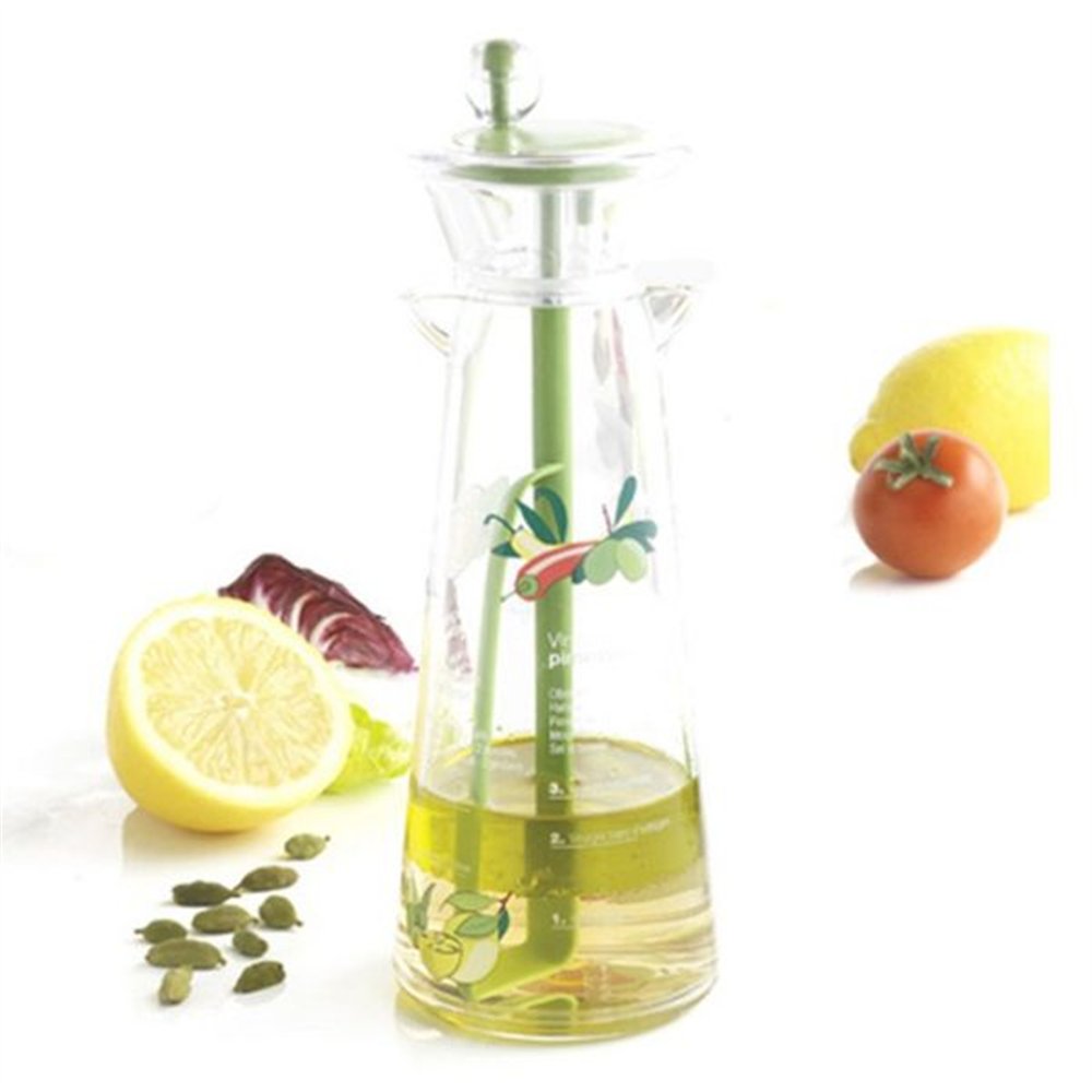Son mécanisme à manivelle actionne un fouet interne qui émulsionne huile, vinaigre, moutarde et épices de façon efficace et régulière. Deux becs verseurs anti-coulures permettent de servir directement depuis le contenant, proprement et sans éclaboussures. Et pour ne jamais manquer d'inspiration, 4 recettes originales sont gravées sur le corps de l'appareil — un vrai carnet de recettes toujours sous la main.