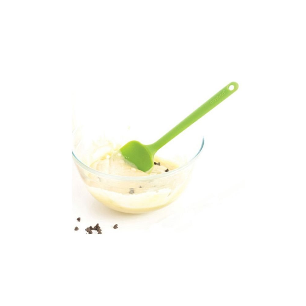 La spatule cuillère silicone verte Mastrad est l'accessoire malin qui combine en un seul ustensile les fonctions de la spatule et de la cuillère. Sa forme creuse originale permet de remuer, racler et transvaser en un seul geste, réduisant le nombre d'ustensiles à sortir et à laver. Son beau coloris vert apporte une note végétale et tonique dans la cuisine, tout en facilitant l'identification rapide de l'ustensile.