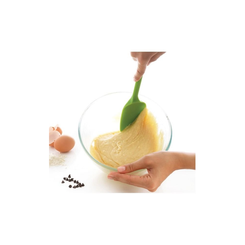 Existe en plusieurs coloris Spatule cuillère silicone Verte - Souple et résistante, cette spatule est parfaite pour mélanger et transvaser toutes vos préparations proprement et facilement grâce à sa tête flexible - Vous pourrez remuer et racler les parois de vos ustensiles sans les rayer et en préservant les revêtements antiadhésifs - Résiste à des températures allant jusqu'à 300°C - Grâce à elle, vous aurez accès aux moindres recoins de vos récipients pour les racler sans rayures - Faite d'un b