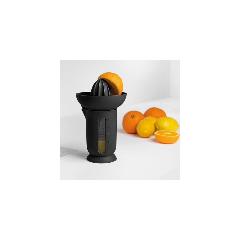 Posé sur votre plan de travail, l'Ufo noir ne passe pas inaperçu et affiche clairement un goût prononcé pour le design contemporain. Fonctionnellement, il répond à toutes les attentes : extraction efficace du jus, retention des pépins et facilité de nettoyage. Son coloris noir résiste bien aux traces et aux projections de jus d'agrumes.