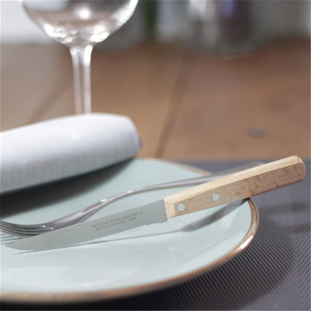 Dotés d'une lame de 11 cm en acier inoxydable, ces couteaux à steak offrent une coupe nette et précise sur toutes les viandes. La gamme Classic Bois mise sur des manches en bois aux teintes profondes — le noir intense et le rouge vif créant un contraste saisissant — pour un confort de tenue agréable au quotidien. Le bois naturel confère une chaleur incomparable à chaque repas.