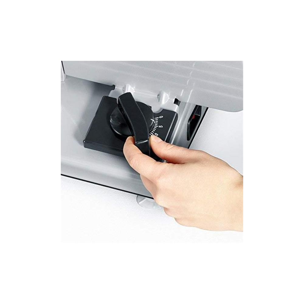 La trancheuse électrique SEVERIN 3915 transforme la préparation culinaire en un jeu d'enfant. Que vous tranchiez de la charcuterie, du fromage, du pain ou des légumes, cette machine compacte et puissante vous offre des résultats dignes d'un traiteur professionnel, directement depuis votre cuisine.