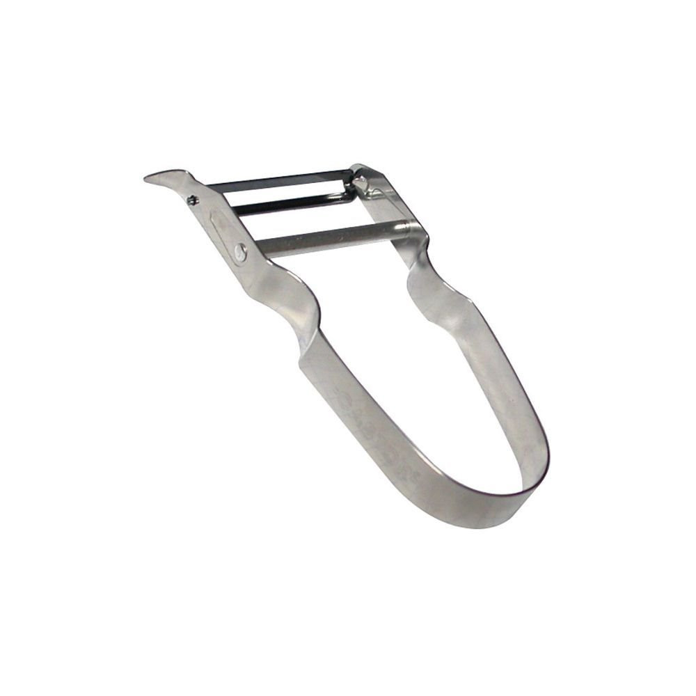 Entièrement réalisé en acier inoxydable, le rasoir Castor présente une lame mobile de haute qualité dont le tranchant est soigneusement affûté pour éplucher avec précision et sans effort. L'inox garantit une excellente résistance à la corrosion, facilitant l'entretien et assurant une longévité remarquable. La lame pivotante s'adapte naturellement aux courbes et irrégularités des légumes, quelle que soit leur forme.