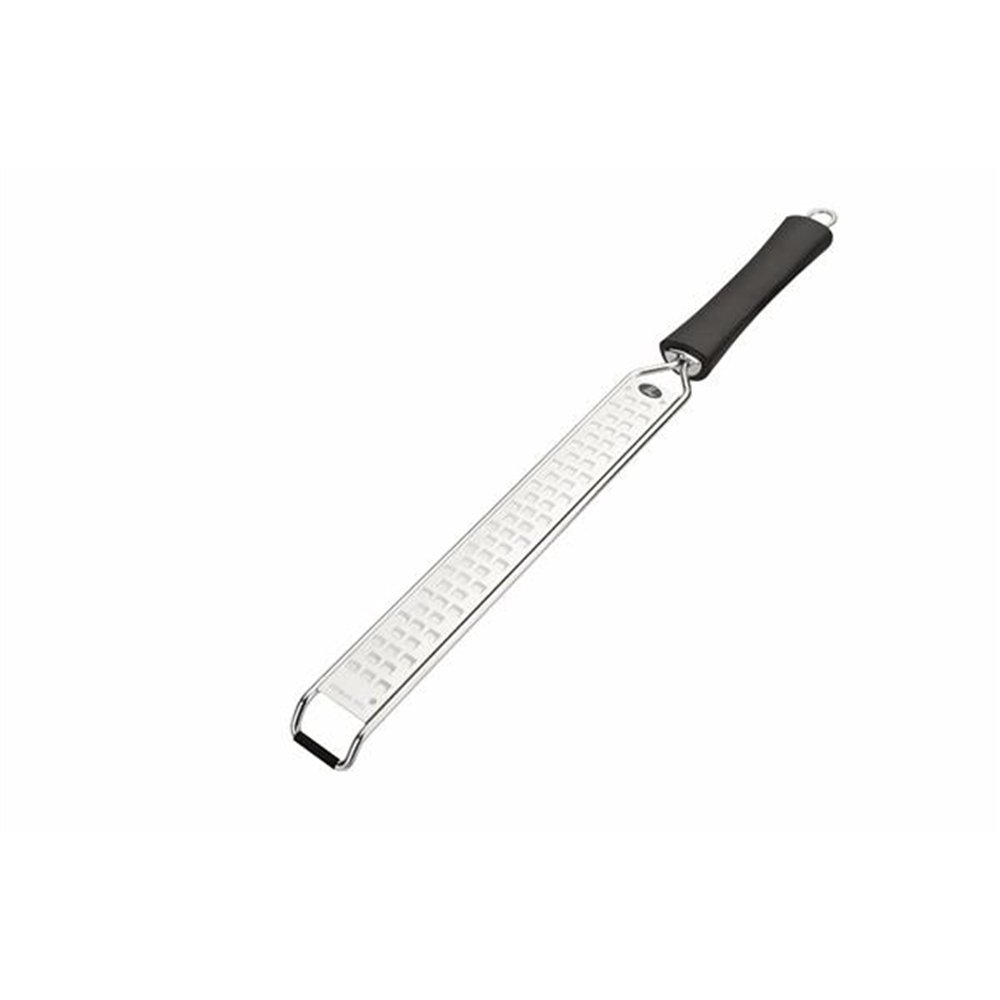 Râpe longue épaisse Inox - Permet de faire une coupe épaisse - Manche bakélite noir pour une meilleure prise en main - Dimension 22 x 3.5 cm .