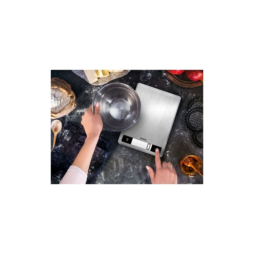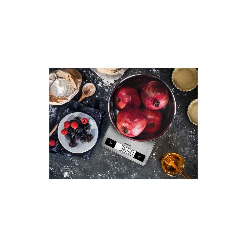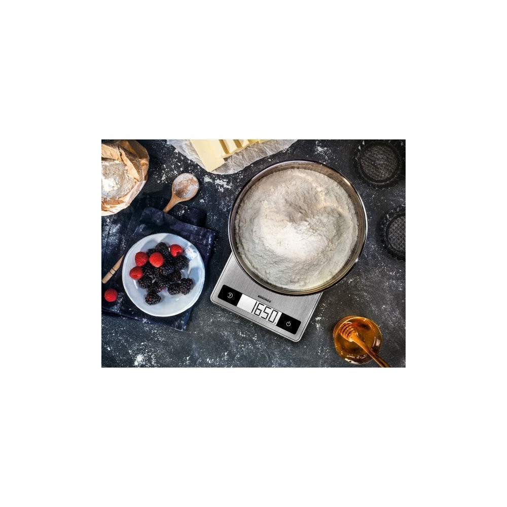 Précision, robustesse et lisibilité : la balance de cuisine SOEHNLE Page Profi 200 en finition inox anti-traces répond aux exigences des cuisiniers les plus exigeants. Conçue pour un usage intensif aussi bien en cuisine amateur que professionnelle, elle allie un design épuré à des performances de pesée remarquables.