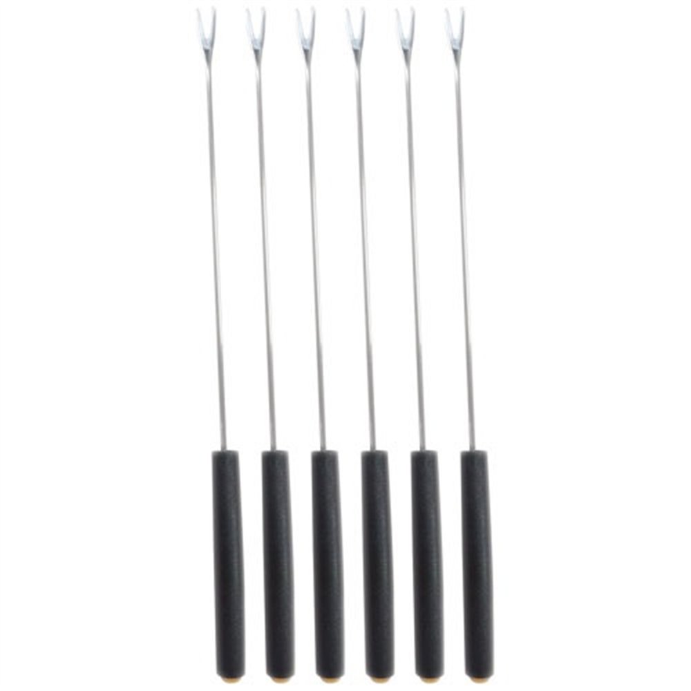 Chaque fourchette est fabriquée en inox de qualité, garantissant résistance à la chaleur et à l'oxydation. Leur conception à 2 dents assure une prise en main sécurisée de chaque morceau de viande plongé dans l'huile chaude, sans risque de glissement. Le manche en plastique noir reste froid au toucher même lors d'une utilisation prolongée, pour un confort optimal à table.