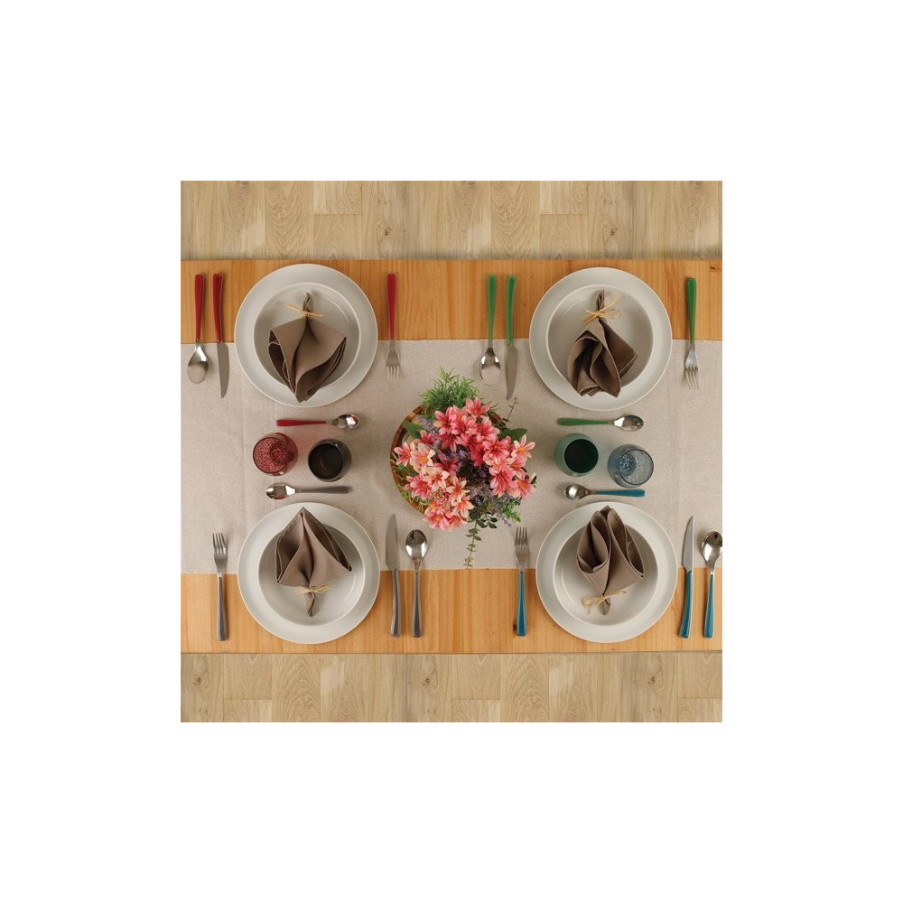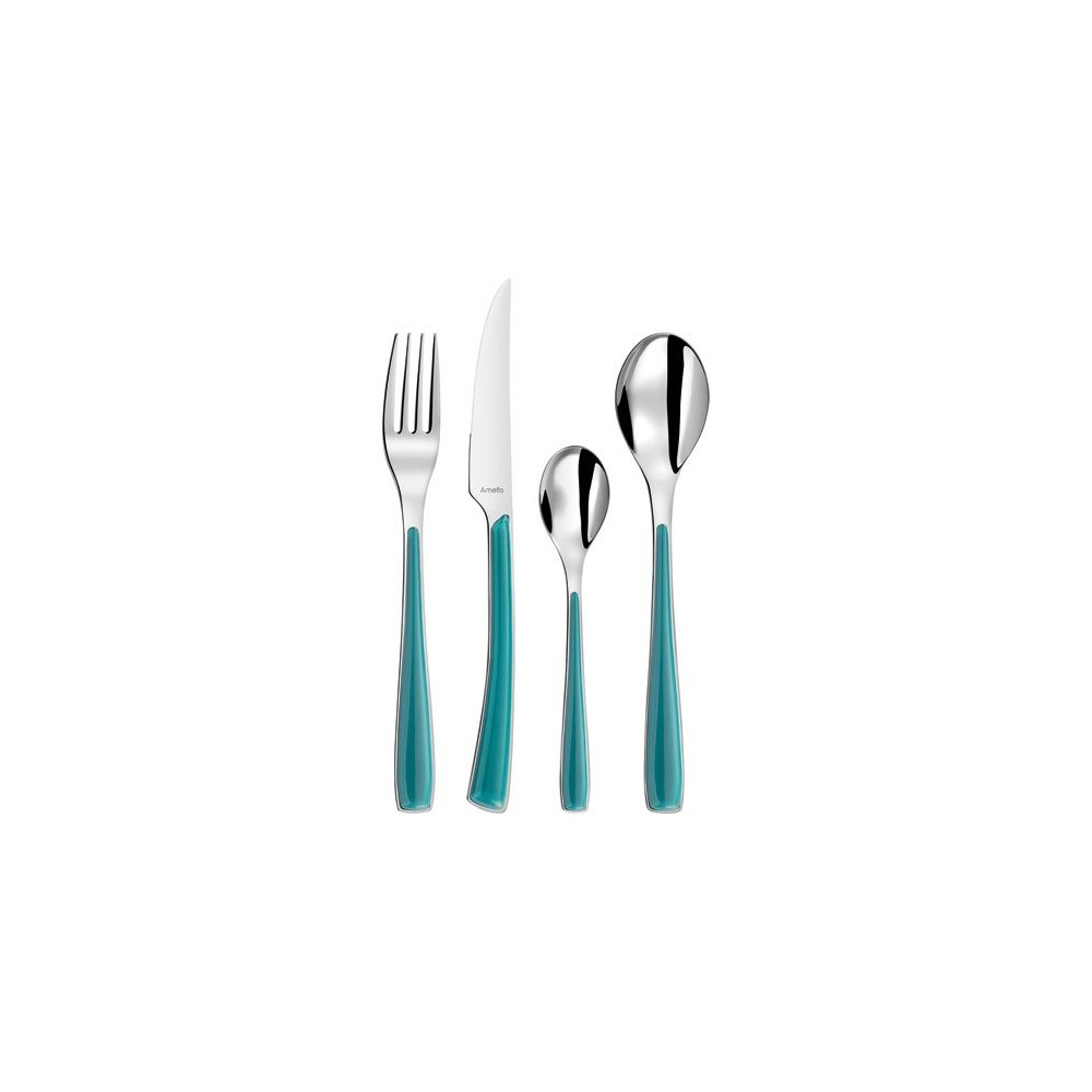 Originale et lumineuse, la ménagère 24 pièces Alizé coloris Turquoise d'AMEFA apporte une touche d'évasion et de fraîcheur méditerranéenne à votre table. Ce turquoise envoûtant évoque les eaux cristallines et les horizons ensoleillés, pour transformer chaque repas en une parenthèse de douceur. Une couleur à la fois joyeuse et reposante qui donne instantanément du caractère à votre dressage.