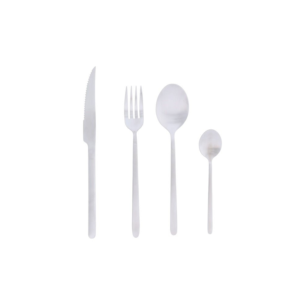 Ménagère 16 pièces Inox Satiné - Anuradha - Dressez une table à la fois simple et élégante avec ces couverts de table à la finition satinée ! - Cette ménagère convient pour 4 personnes et comprend 4 couteaux, 4 fourchettes, 4 cuillères de table et 4 cuillère à café - En inox finition satinée - Couteaux avec lame dentée pointue - Nettoyage facile : passe au lave-vaisselle - Boîte cadeau.