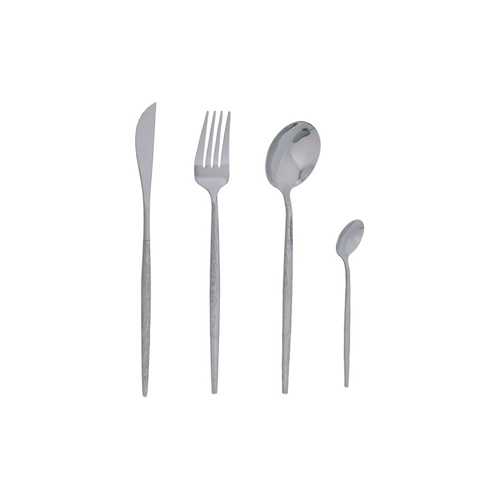 Fabriqués en inox avec motifs martelés, ces couverts associent robustesse et esthétique travaillée pour un rendu soigné sur toutes les tables.