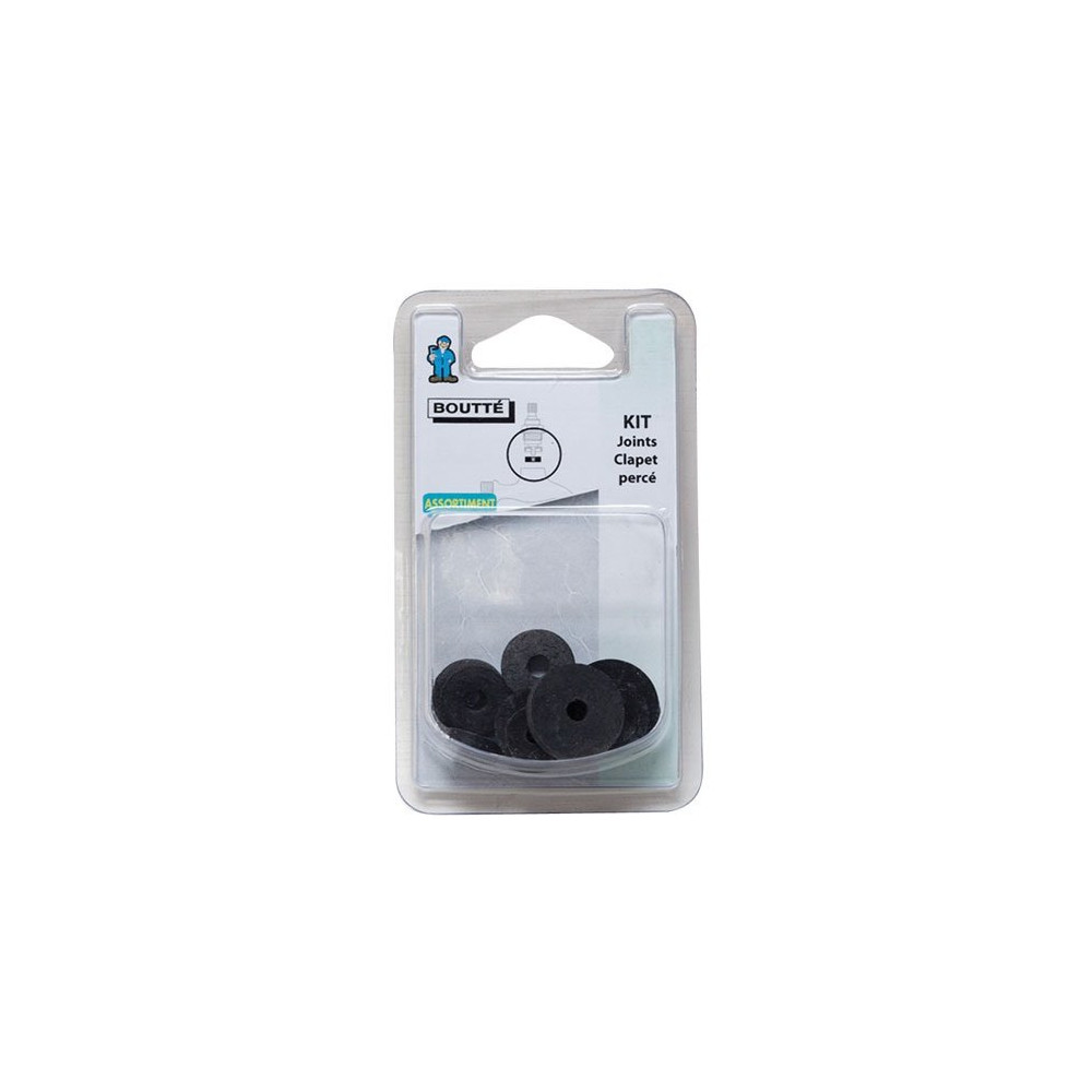 L'assortiment de joints clapets percés BOUTTE (réf. 1866334) répond aux besoins des plombiers et bricoleurs qui interviennent sur des robinets à clapet nécessitant un joint avec perçage central. Ce type de joint spécifique est indispensable pour certains modèles de robinets où le passage de l'eau s'effectue à travers le joint lui-même.