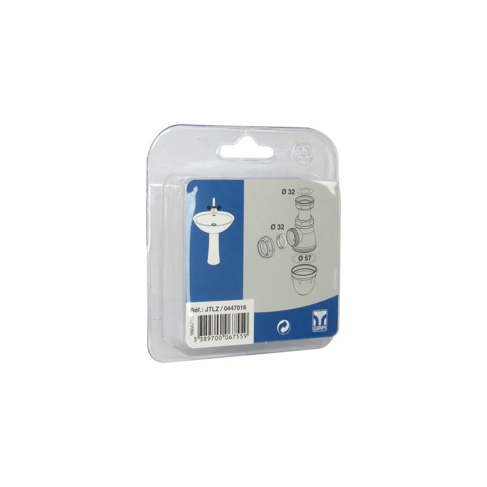 À la différence des kits évier (Ø 40 mm), ce kit est spécifiquement dimensionné pour les siphons de lavabo Ø 32 mm, format le plus courant dans les salles de bain résidentielles. Il convient pour résoudre les problèmes de suintement ou de fuite franche au niveau des raccords vissés du siphon, sans nécessiter le remplacement complet de l'équipement.