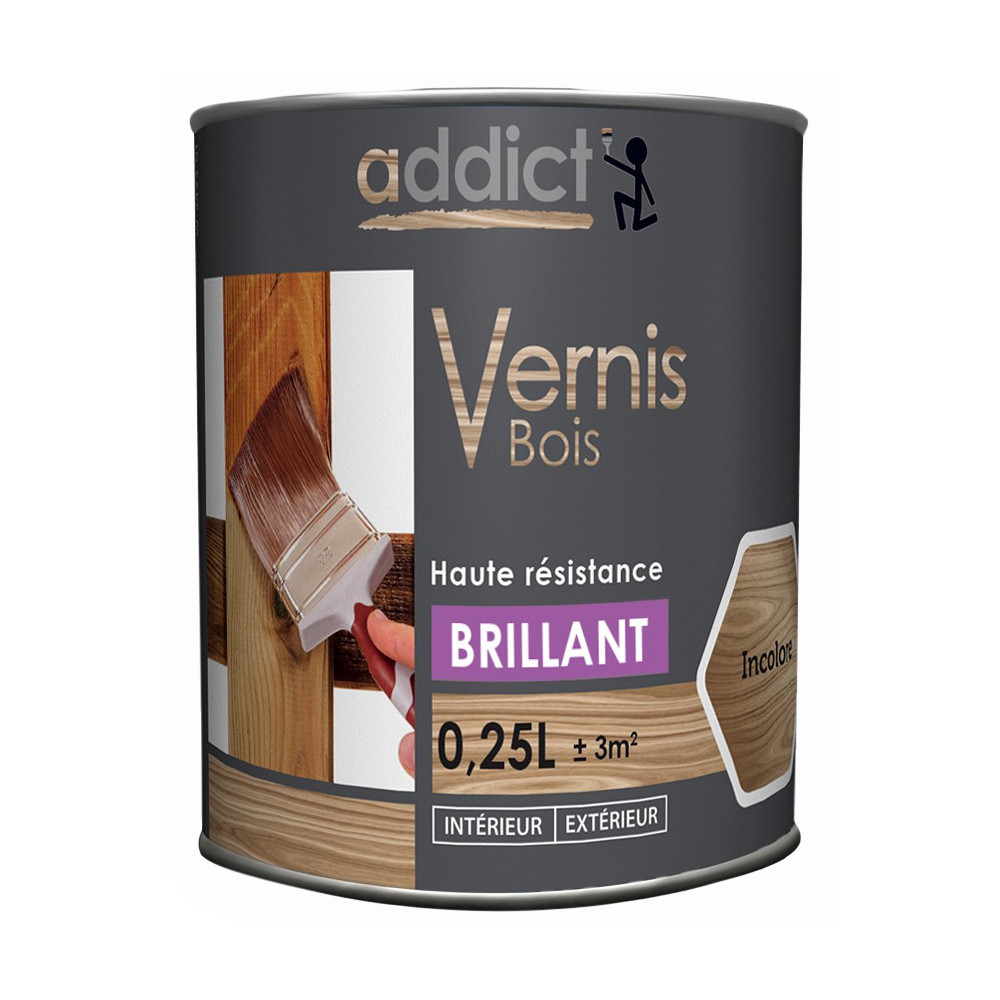 Le Vernis Bois Brillant ADDICT en flacon de 250 ml est une solution de protection et d'embellissement formulée à base de résine Alkyde-Uréthane haute résistance. Ce vernis de qualité habille le bois d'un film protecteur solide tout en révélant la beauté naturelle des veines et de la matière, grâce à sa finition brillante très appréciée pour les boiseries soignées.