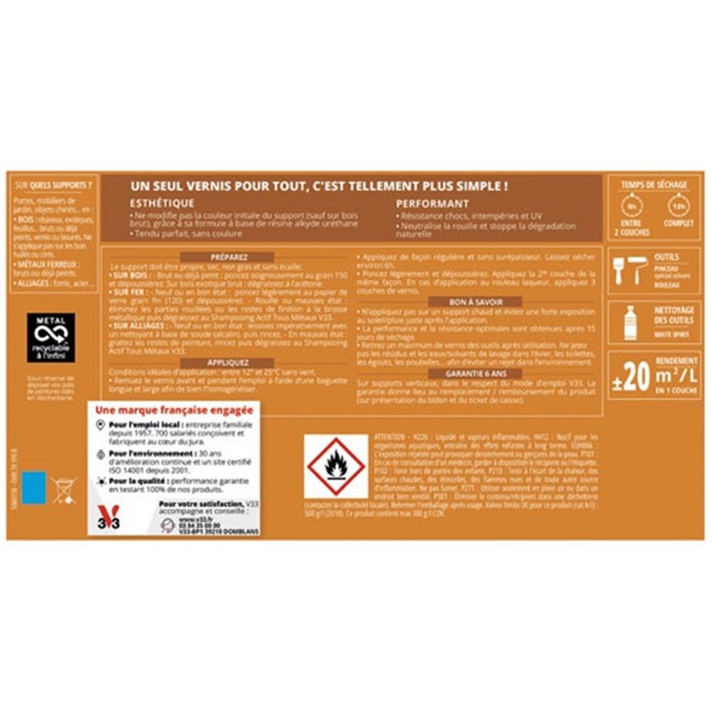 V33 - Vernis multi matériaux extérieur incolore satin 0.25l