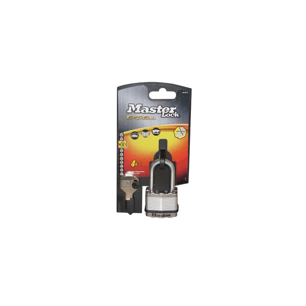 Au cœur de sa conception, le cylindre à 4 gorges offre un niveau de protection contre le crochetage supérieur aux cadenas d'entrée de gamme. Le corps en acier laminé résistant aux chocs mesure 45 mm de large, tandis que l'anse d'une hauteur dégagée de 38 mm permet de s'adapter à la majorité des supports d'accrochage, anneaux et cadenas.