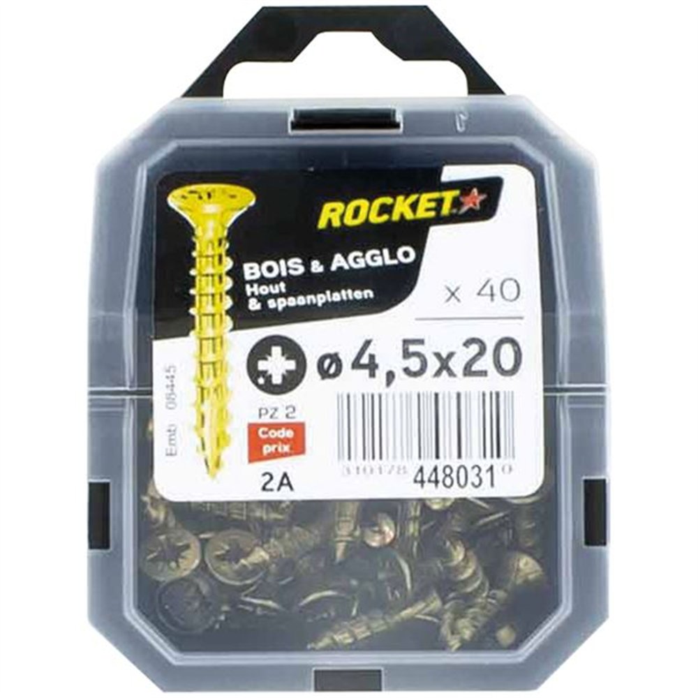 La longueur de 20 mm pour un diamètre de 4,5 mm correspond parfaitement aux fixations de petits éléments sur panneaux de particules, medium (MDF) ou bois tendres. La technologie anti-fendage de la gamme Rocket protège le matériau lors de l'enfoncement, y compris près des bords.