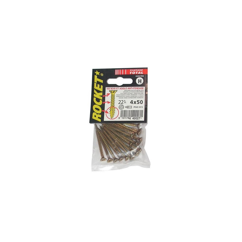 Vis Rocket Tête Fraisée pozi acier bichromaté. Vis anti-fendage pour bois et agglomérés. Vis idéale pour tous travaux d'intérieurs : simple, rapide et efficace.